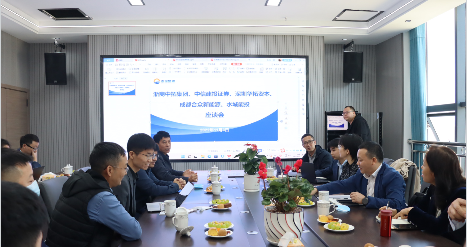 2022年11月3日,浙商中拓集團股份有限公司、中信建設證券股份有限公司、深圳華拓資本投資管理有限公司、成都合眾有限公司、六盤(pán)水市水城區能投實(shí)業(yè)(集團)有限公司在水城能源大廈17樓會(huì )議室召開(kāi)座談會(huì )。