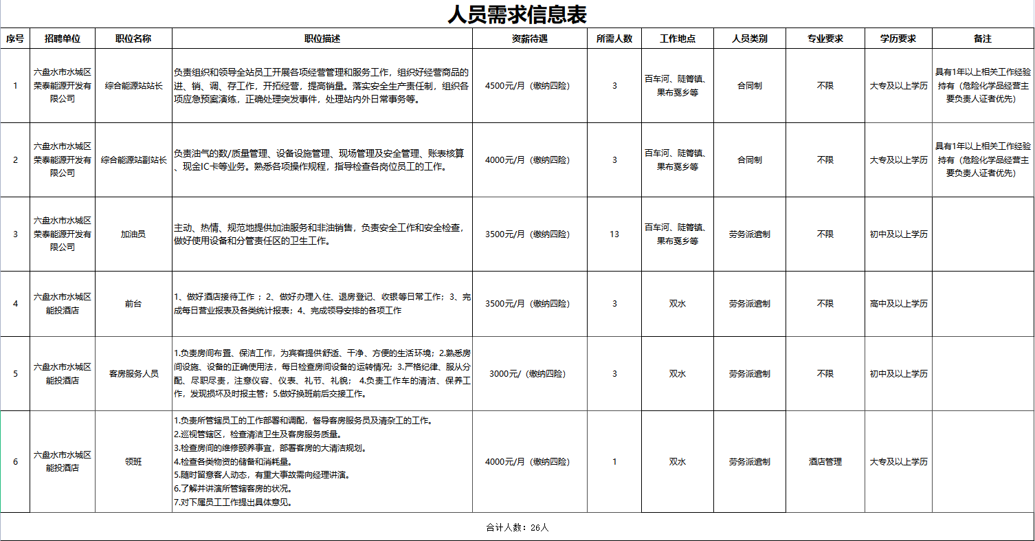 一、六盤(pán)水市水城區能投實(shí)業(yè)(集團)有限公司招聘崗位信息表