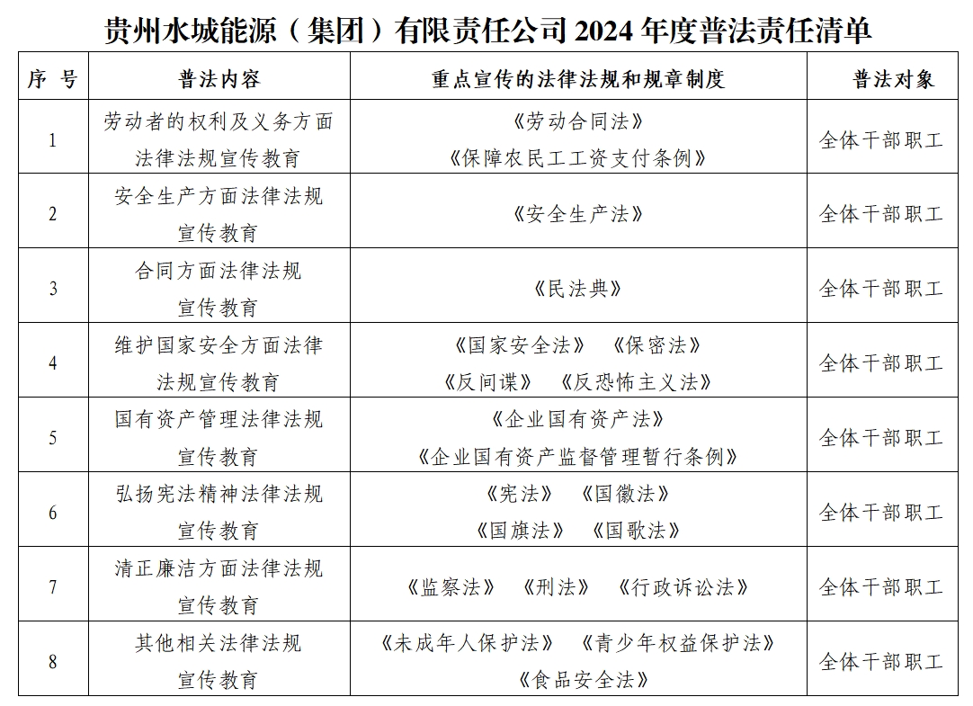 貴州水城能源(集團)有限責任公司2024年度普法責任清單