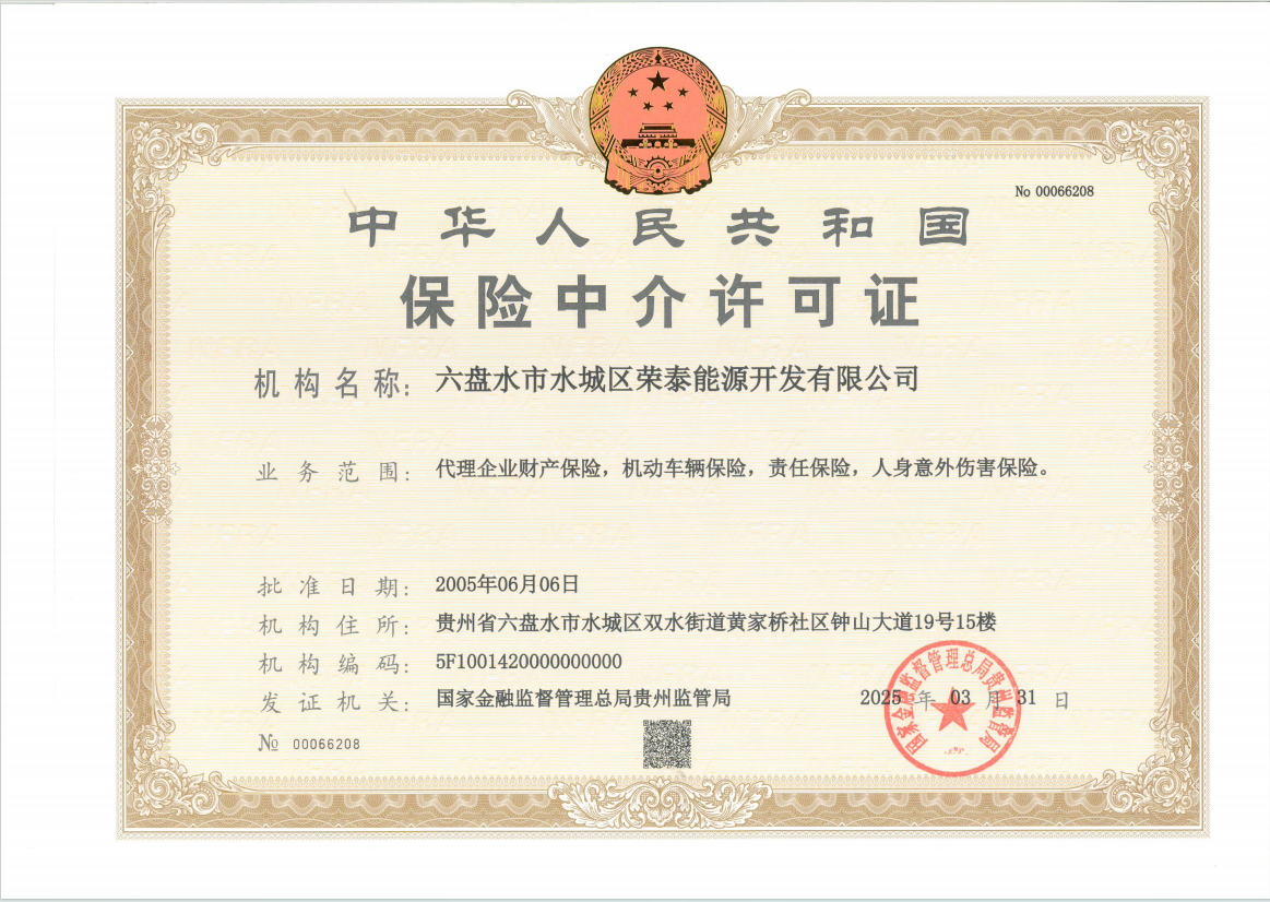 六盤(pán)水市水城區榮泰能源開(kāi)發(fā)有限公司《中華人民共和國保險中介許可證》機構住所由原貴州省六盤(pán)水市水城區雙水街道(水城區工業(yè)和信息化局一樓)變更為貴州省六盤(pán)水市水城區雙水街道黃家橋社區鐘山大道19號15樓,現予以公告。