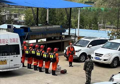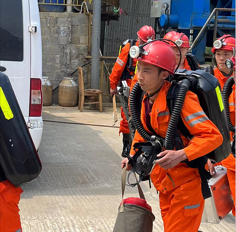 14時(shí)32分救護隊接到召請電話(huà),立即組織出動(dòng),于14時(shí)48分到達礦井,初步了解事故情況后,向指揮部領(lǐng)取救援任務(wù),按照指揮部的指令,迅速開(kāi)展搶險救災工作。
